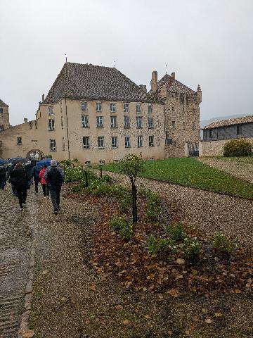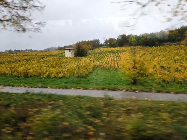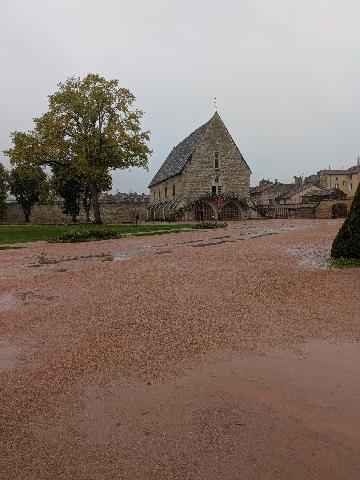 Had a busy day today, but the weather was a bit rainy. Our first adventure was a trip to the ruins of Cluny Abbey. The ride to the abbey would have be truly spectacular if it were not raining. The vineyards were a beautiful golden color and the rain only muted this a little. We also drove past the fortress at Berze-le-Chatel. A remarkable fort perched high on a hill.