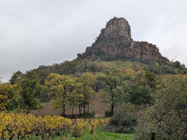 After the wine tasting, we drove by the landmark Solutre-Pouilly. This is a formation that many people climb. Fortunately the rain stopped and we got out and took pictures.