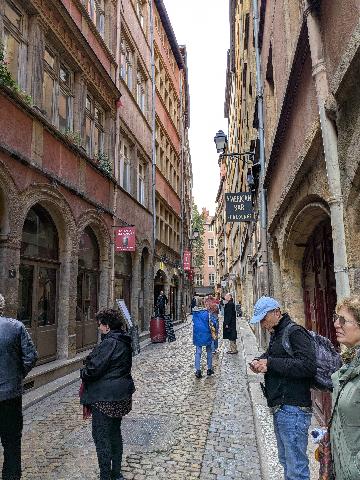 This afternoon we left Trevoux to tour Vieux Lyon on a tasting tour. Vieux Lyon is the largest intact Renaissance district in the world. It has also be designated as a UNESCO site. The district has narrow streets and tall buildings as the citizens had to maximize the space between the Saone River and the hills next to the river.