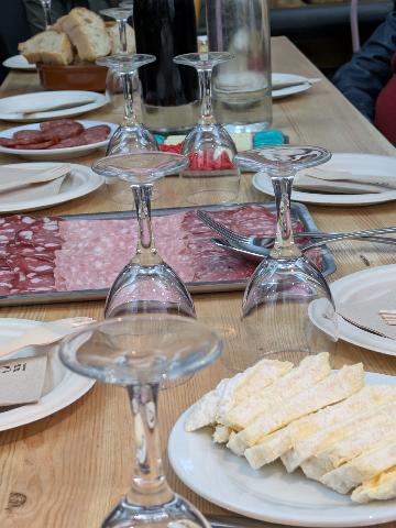 We then made our way to the next tasting spot. There were a selection of local sausages and cheese along with the lovely red pralines and some wonderful local red wine.